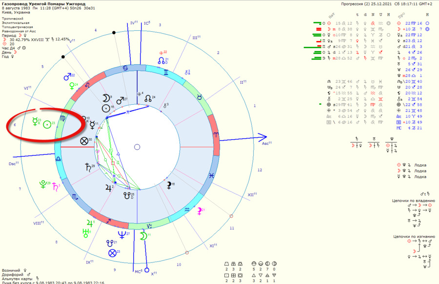 Но все же – что по настоящему моменту? … А 2022 год тоже должен оказаться значительным событием. Дело в том, что в прогрессиях Солнце соединяется с ретро Меркурием (упр Восх Узла) и здесь похоже важная история которая рассказывает об изменении целевого назначения трубопровода. История эта была начата в 2007 году, когда в прогрессивной карте Меркурий остановился и начал разворот. А в реальности – были озвучены планы, и определённый ультиматум… Историческая справка – газовый конфликт между Россией и Украиной, когда транзит был кратковременно остановлен в декабре 2008 и в начале 2009 подписаны новые договоренности (Тимошенко), что, кстати сказать, стало поводом для ее тюремного заключения.